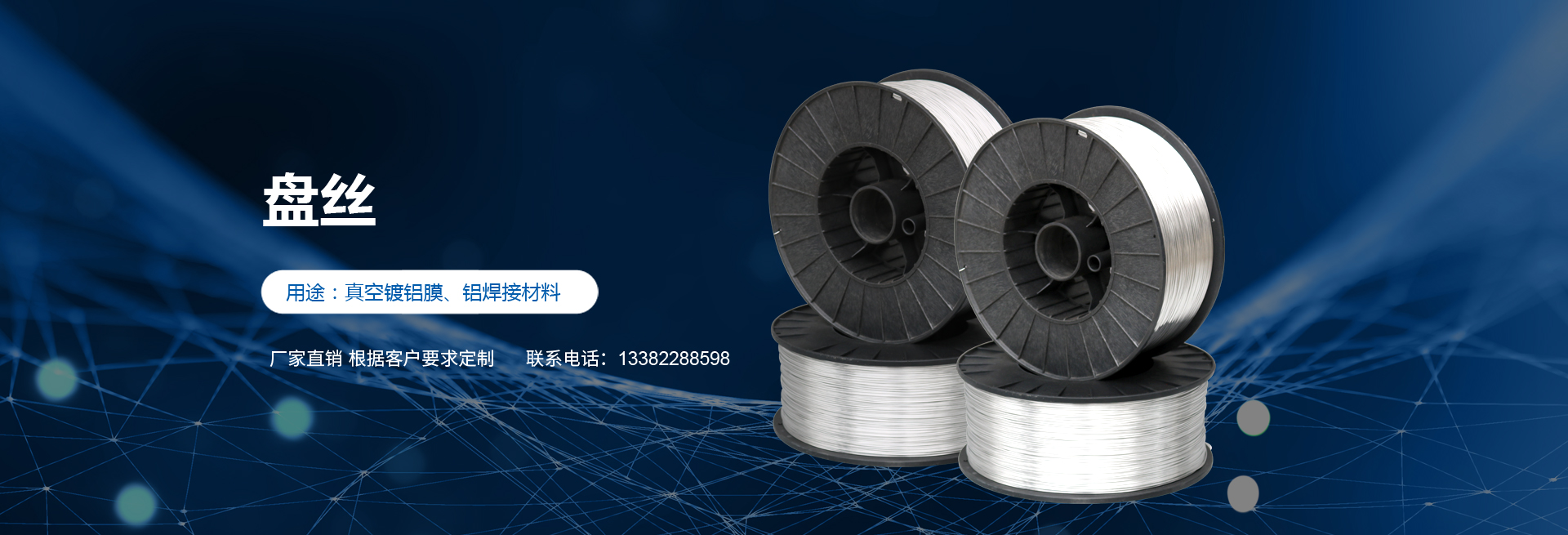 高純度鋁絲:公司主打產品。SGS認證產品,適用于真空鍍鋁。純度99.9%??蔀榭蛻袅可矶ㄗ錾a的各盤裝鋁絲、鋁直條。產品應用領域十分廣泛,如:真空鍍鋁膜、電器儀表、電子、家電業、電線電纜業、建筑裝飾業、五金裝飾業、IT電腦業、廣告裝飾業、醫療器械、工藝制品、防腐制品(大型港口、橋梁、碼頭)、食品包裝容器、紡織服裝等。